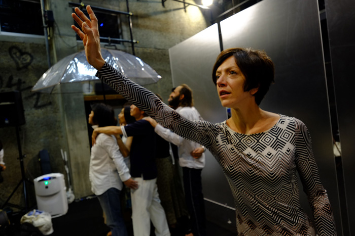 19 août : filage des chansons et des parties batterie, global rehearsal…C’est ainsi, il n’y a pas de case blanche sur mon calendrier, nous avons créé Umitonotaiwa, la version japonaise d’Entretiens avec la mer, en trois semaines et demi, avec 15 artistes au plateau, et une dizaine d’autres à la mise en scène, au design sonore, à la lumière, aux sous-titres, à la scénographie.